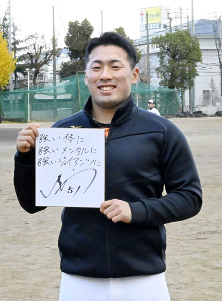 「強い体に」など2023年の抱負を色紙につづった浅野(C)共同通信社