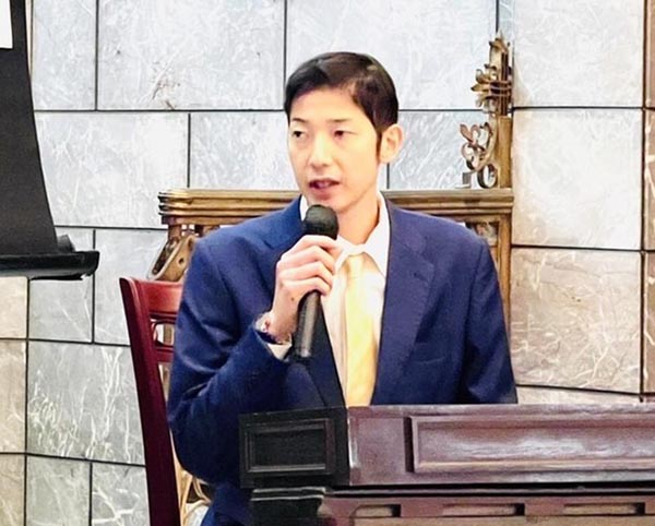 講演で自身の体験について話す横田さん(提供写真)