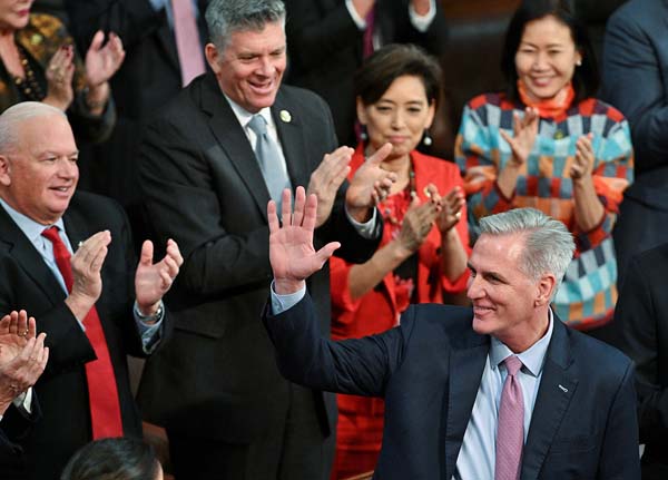 15回目の投票でようやく下院議長に選出された共和党のマッカーシー(手前右)/(C)ロイター