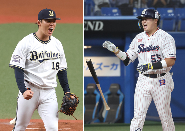昨季2022年セ・パMVPコンビの山本由伸(左・オリックス)と日本の4番・村上宗隆(ヤクルト)/(C)日刊ゲンダイ