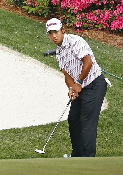 2年前のマスターズでは、13番でイーグルパットを決めている松山(C)ゲッティ=共同
