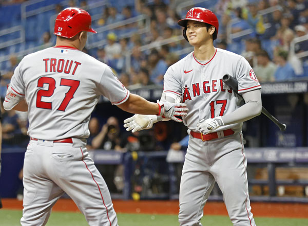 大谷と米国代表主将でエ軍主砲トラウト(左)との同門対決にも注目が集まっている(C)共同通信社