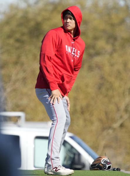 大谷は新たにバッテリー組む若手捕手を相手に37球/(C)共同通信社