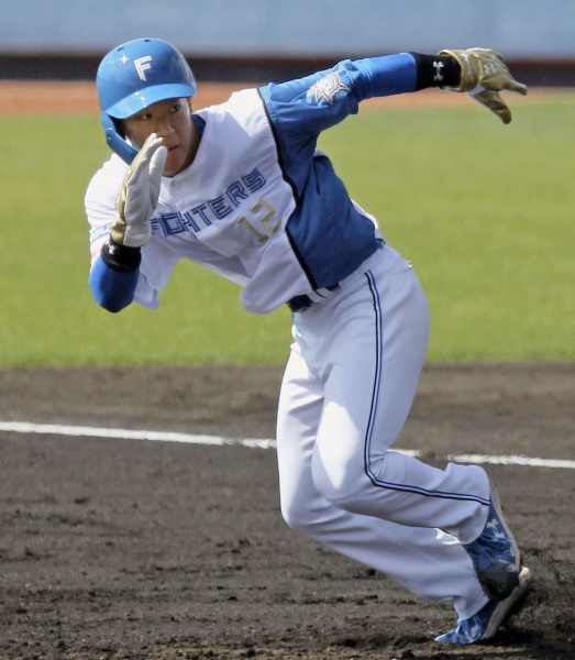 楽天との練習試合で3安打を放った日本ハム・矢沢宏太=名護(C)共同通信社