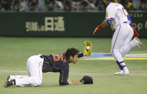ケガを恐れずキャッチ!(2013年WBC台湾戦で、牧田和久氏)/(C)日刊ゲンダイ