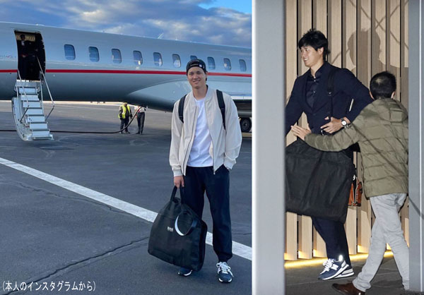 超高級プライベートジェットを利用した大谷(左)はこの日のうちに羽田に到着(右)/(C)共同通信社