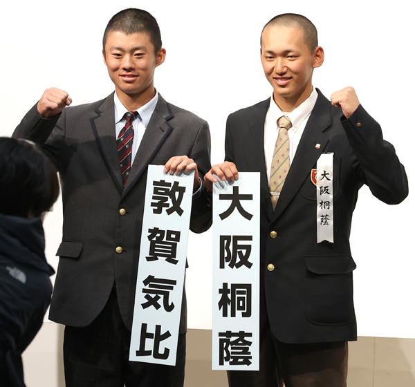 大阪桐蔭は敦賀気比と対戦(右はドラフト1位候補左腕で主将の前田)/(C)日刊ゲンダイ