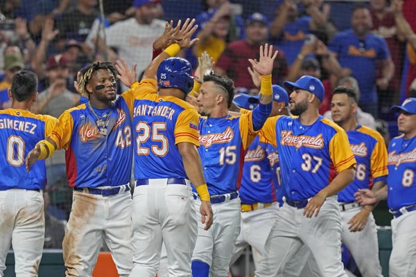 準々決勝進出を決めたベネズエラナイン(C)AP=共同