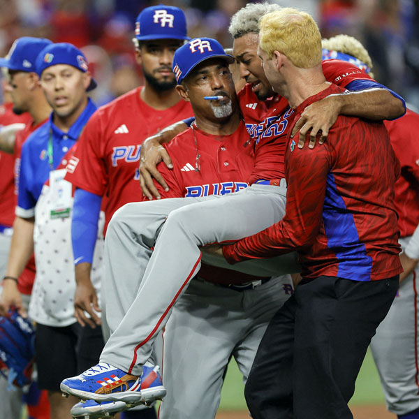 プエルトリコ関係者に運ばれるディアス(C)ロイター/USA TODAY Sports