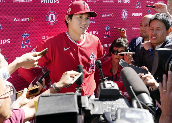大谷はWBCの後もメディアの取材攻勢(C)共同通信社