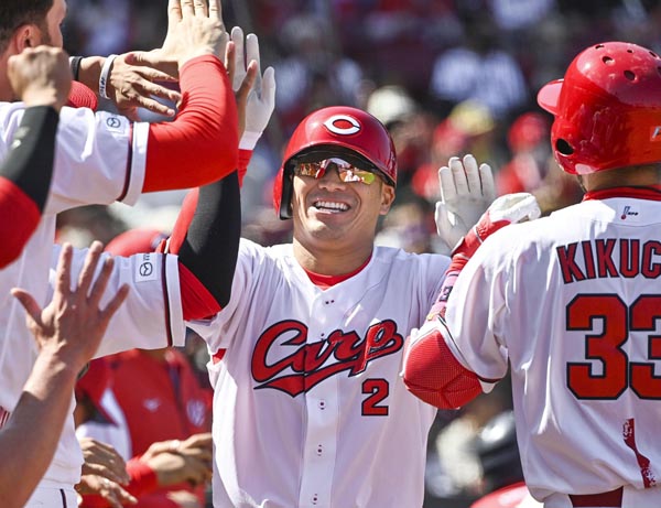 田中の2年ぶり本塁打にチームも大盛り上がり(C)共同通信社
