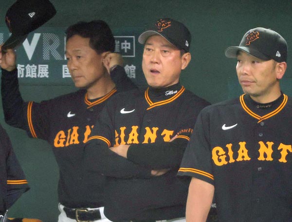 笛吹けど踊らず…(ベンチで浮かない顔の原監督ら)/(C)日刊ゲンダイ