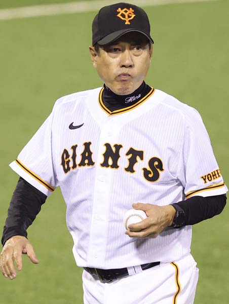 8回途中、選手交代を告げ、さえない表情でベンチへ戻る原監督=18日、長崎(C)共同通信社