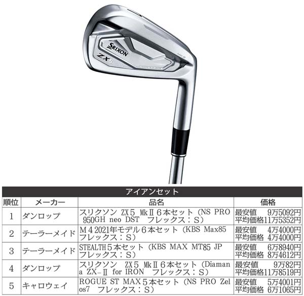 1位はダンロップのスリクソンZX5 MkⅡアイアン(提供写真)