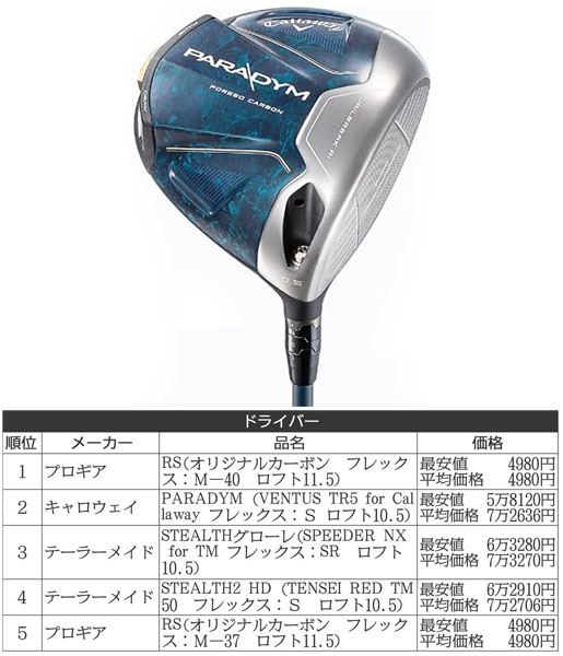 キャロウェイのパラダイムドライバーが2位に(提供写真)