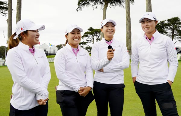 第3日を終え取材に応じる日本。左から古江彩佳、畑岡奈紗、渋野日向子、笹生優花 (C)共同通信社