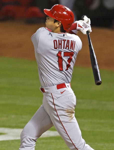 大谷の偉業は、同日(8月10日)七回にダメ押しの25号ホームランを放ち、勝利に導いたこと(C)共同通信社