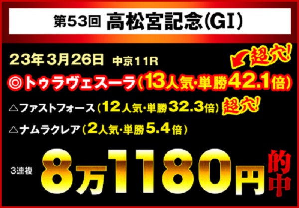 多くのマスコミが無印だった穴馬から衝撃の8万馬券をズバリ!