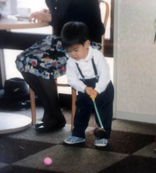 2歳の時に自宅でスイング(提供写真)