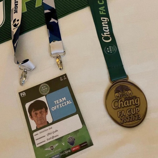 FA杯優勝メダルと石井監督のIDカード(提供写真)