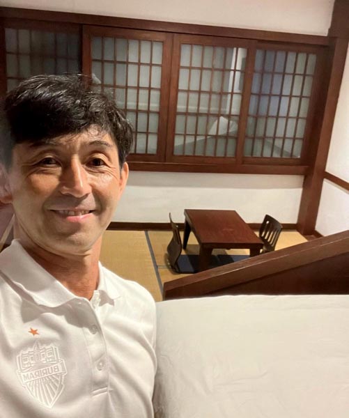 バンコク市内の日本式旅館でくつろぐ石井監督(提供写真)