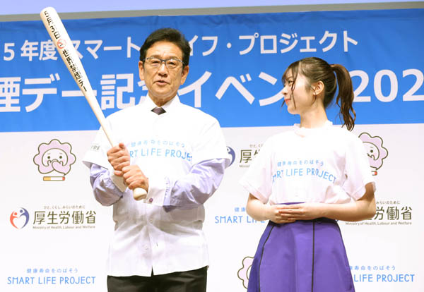 「世界禁煙デー記念イベント」に出席した侍ジャパンの栗山英樹監督(左)と女優の星乃夢奈(C)日刊ゲンダイ