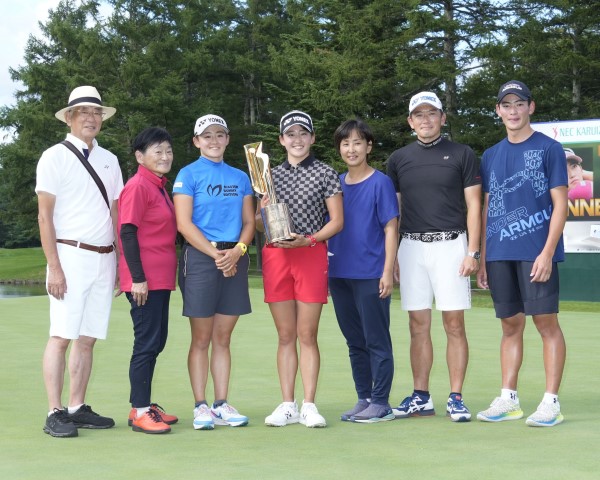 千怜が初優勝した昨年のNEC軽井沢72ゴルフの応援にかけつけた岩井光太(右端)/(C)共同通信社