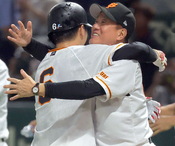 坂本を抱きしめる原監督(C)日刊ゲンダイ