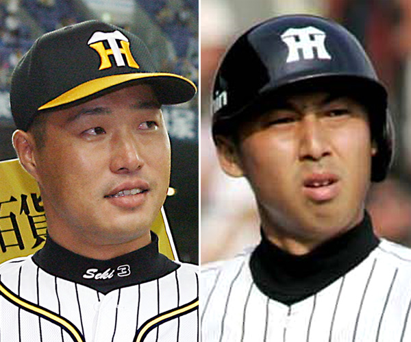 現役時代の今岡(右)と関本(C)日刊ゲンダイ