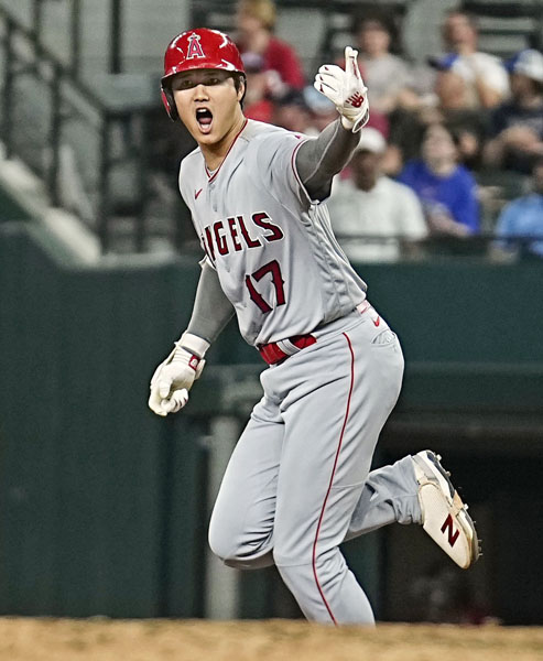 12日のレンジャーズ戦で20号2ランを放つ大谷(C)共同通信社