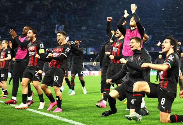 ナポリとの準々決勝に勝利して喜ぶACミラン(C)ロイター