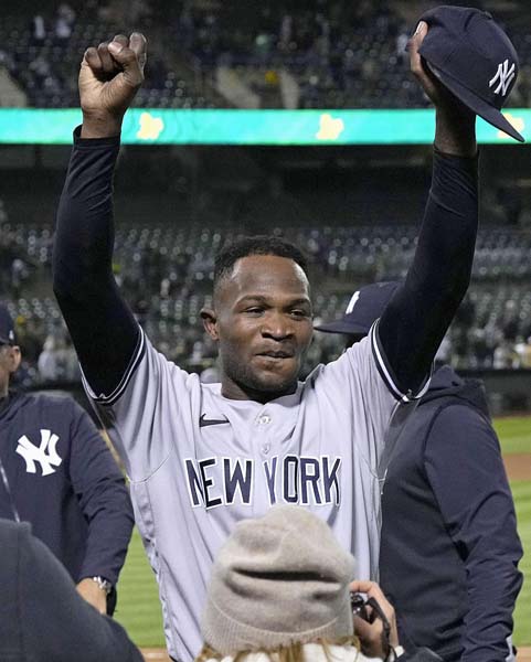 完全試合を達成したヤンキースのヘルマン(C)ゲッティ=共同
