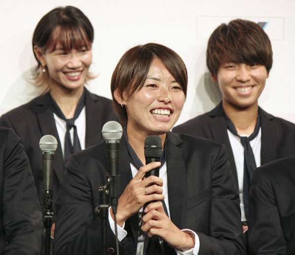 6日に行われたW杯の壮行会に出席し、笑顔を見せる日本の熊谷主将(C)共同通信社