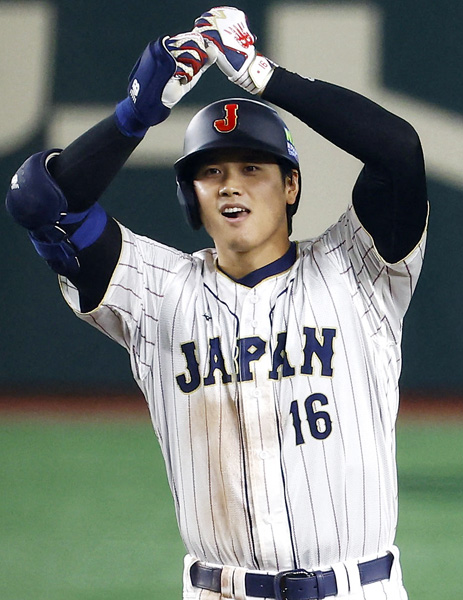 2023WBCの韓国戦、ペッパーミル・パフォーマンスをする大谷(C)ロイター