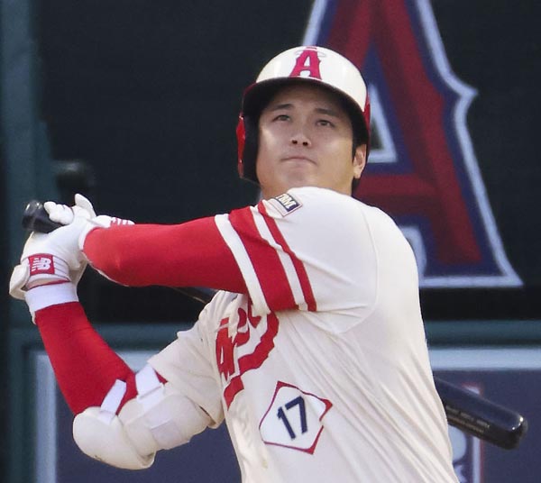 17日のアストロズ戦の九回、34号ソロを放つ大谷(C)共同通信社