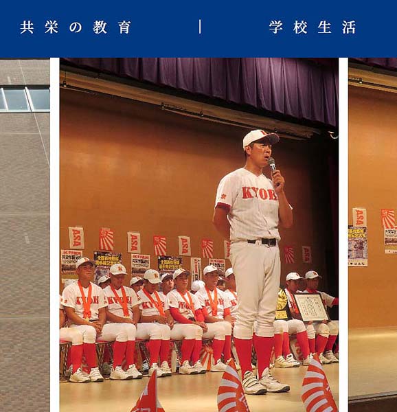 優勝報告会であいさつする原田健輔監督(共栄学園公式HPから)