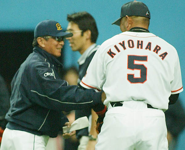 仰木監督と巨人時代の清原(C)日刊ゲンダイ