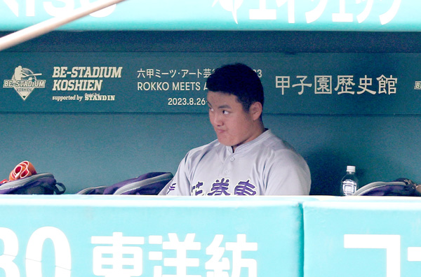 クーリングタイム中一人ベンチに出てきた佐々木麟太郎(C)日刊ゲンダイ