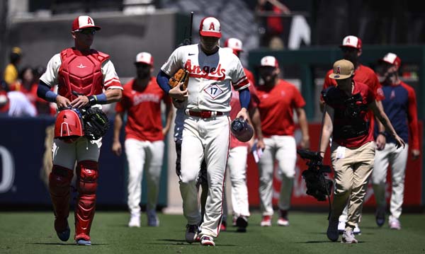 エンゼルスはプレーオフ進出を完全に諦めた(大谷=中央) (C)ロイター/USA TODAY Sports