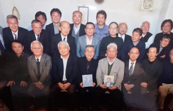 2017年1月死去の木之本興三氏、同年2月死去の岡野俊一郎氏を偲ぶ会に出席した金子氏(前列中央・筆者提供)