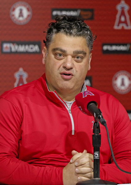 会見で大谷の右肘靭帯損傷を明らかにしたミナシアンGM(C)共同通信社