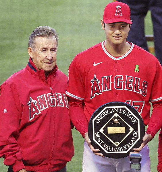 大谷の胸中は…(モレノ・オーナーと)/(C)共同通信社
