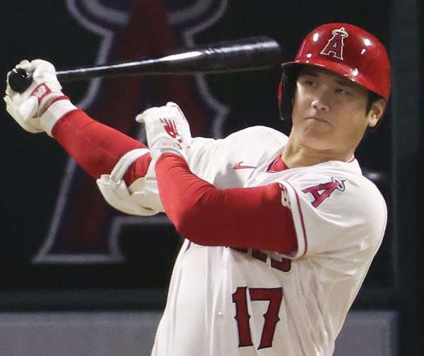 Absolutely Amazing!(ダブルヘッダー第2試合の5回、二塁打を放つ大谷)/(C)共同通信社