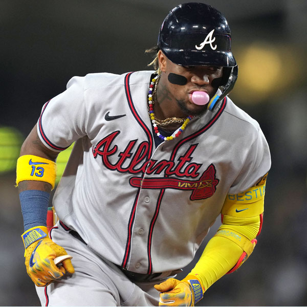 1日ドジャース戦2回、30号満塁本塁打を放ち塁を回るブレーブスのアクーニャ。メジャー史上初・同一シーズン「30本塁打、60盗塁」を達成(C)ロイター/USA TODAY Sports