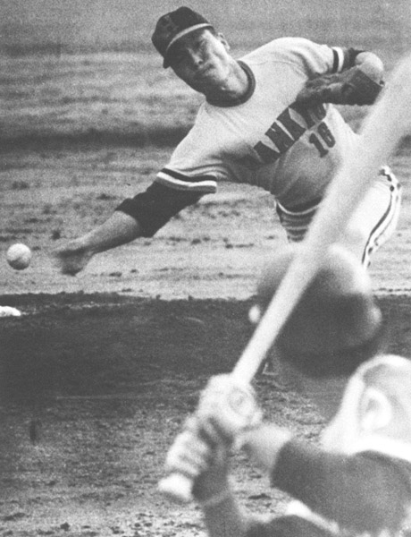 通算187勝を挙げた阪急の足立光宏投手(C)共同通信社