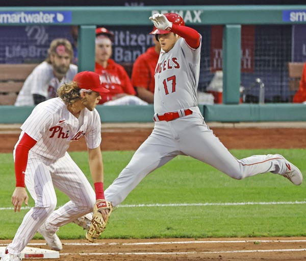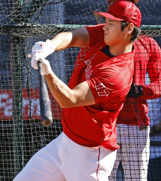 スイングを途中で止めたことで負担がかかった(大谷)/(C)共同通信社