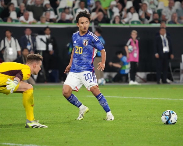 10日のドイツ戦で浅野のゴールをお膳立てした久保(C)Norio ROKUKAWA/office La Strada