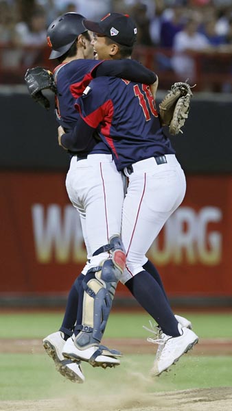 日本のエースとして奮闘(初優勝を決め、喜ぶ前田と尾形=左)/(C)共同通信社