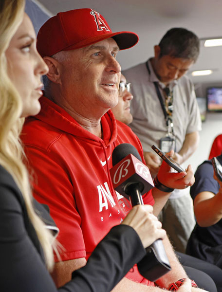 大谷のためにロースターがひとつつぶれる(取材に応じるネビン監督)/(C)共同通信社