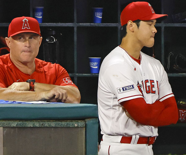 ネビン監督(左)も大谷の状態に手を焼いている?(C)共同通信社